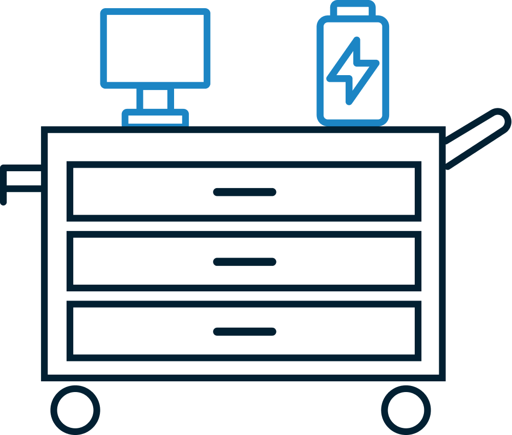 За всё время работы перебоев и поломок не было. Всё хранится и заряжается без проблем. Хотелось бы только, чтобы батарея была чуть легче и чтобы таких комплектов было больше — особенно для тележек с дефибрилляторами.